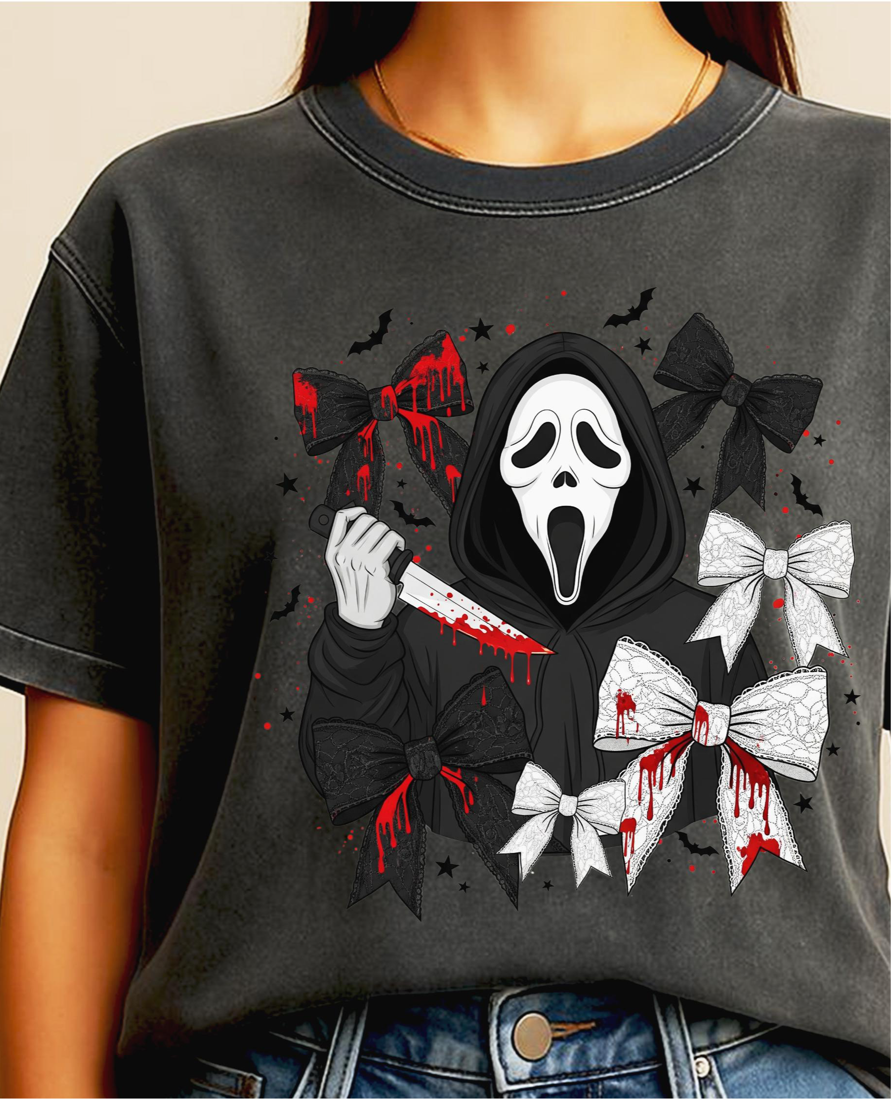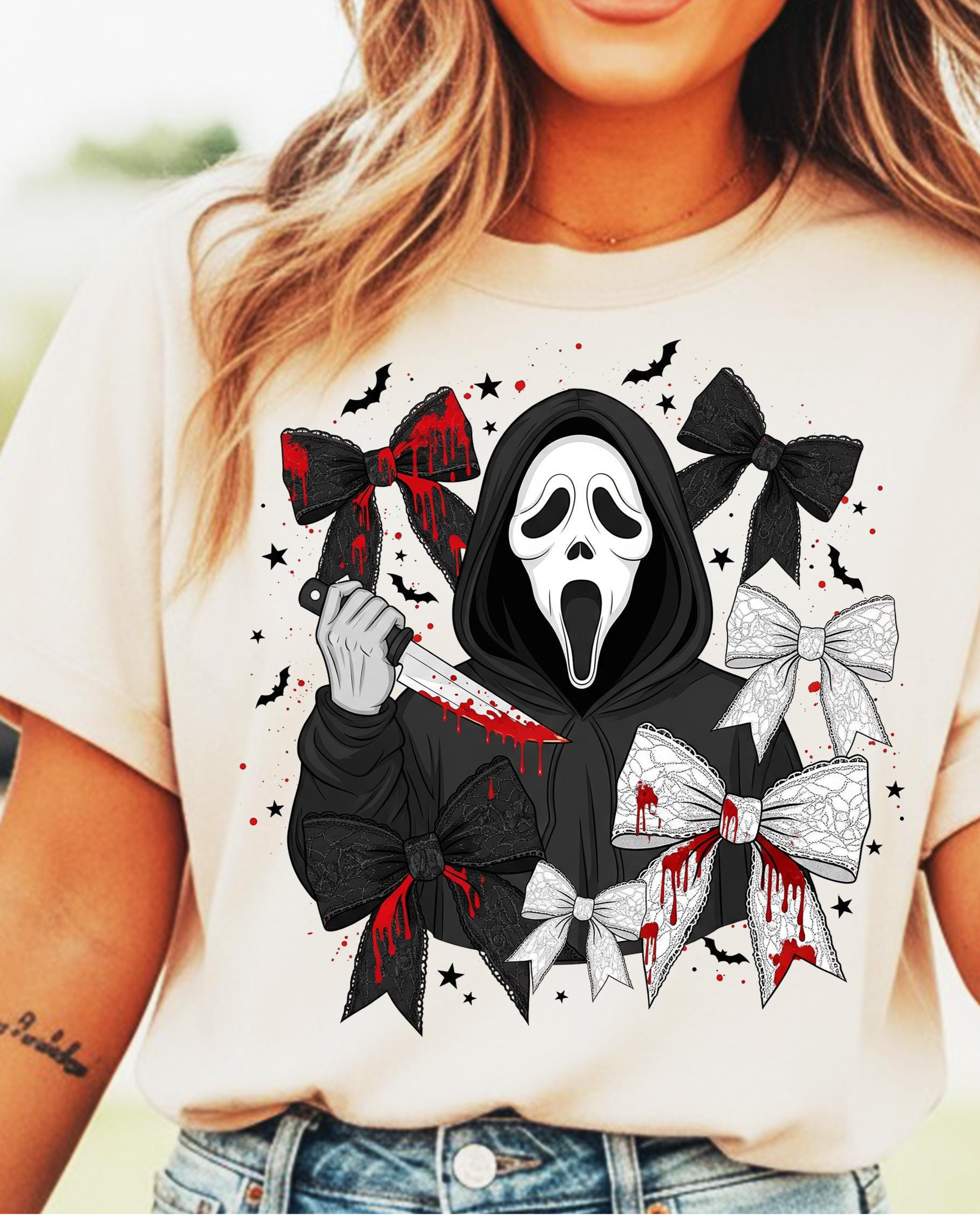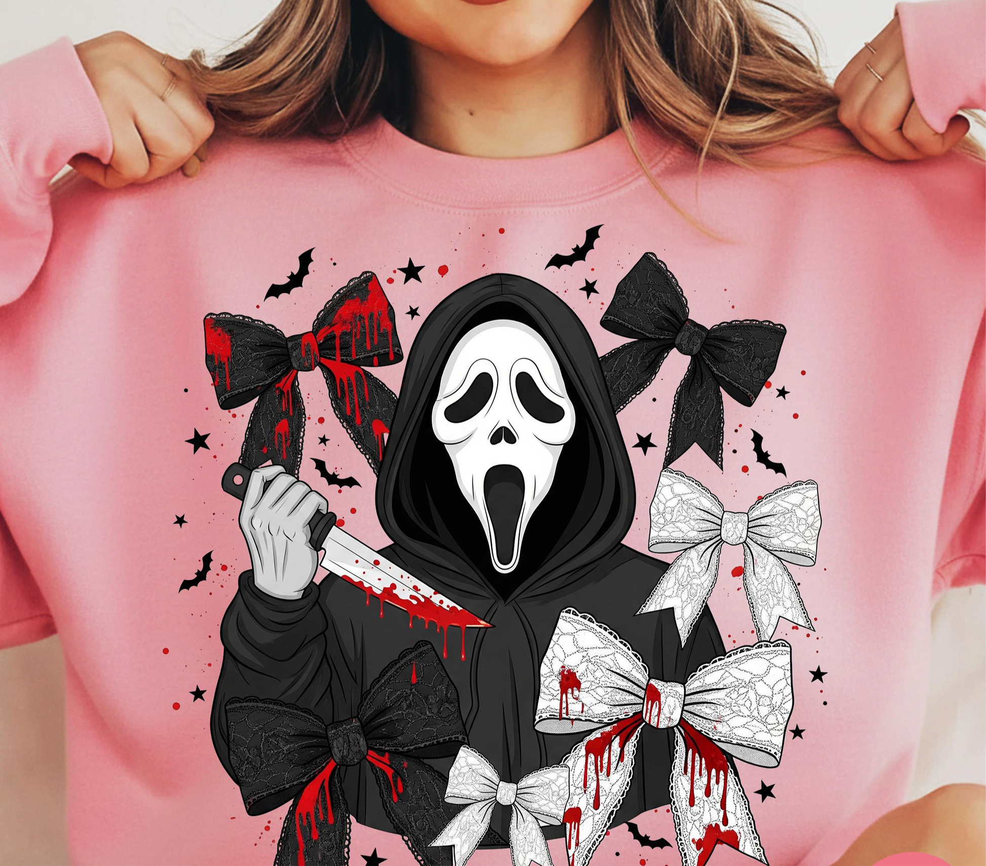 Experience creepy chic with the Horror Knife With Bows unisex tshirt or sweatshirt. This scream movie-inspired apparel features a horror knife and bows, adding a touch of horror to your wardrobe. Made for those with a daring sense of style, this shirt is perfect for fans of the genre.