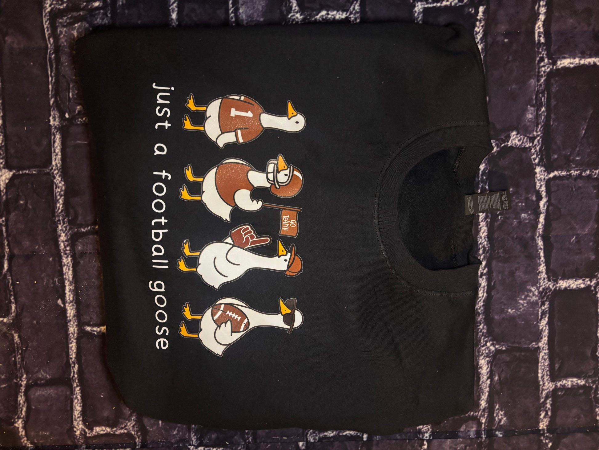 Introducing Just a football goose, the perfect addition to any sports fan's wardrobe. Our high-quality t-shirts and crewnecks come in a variety of colors to match any style. Show off your love for the game with Just a football goose.